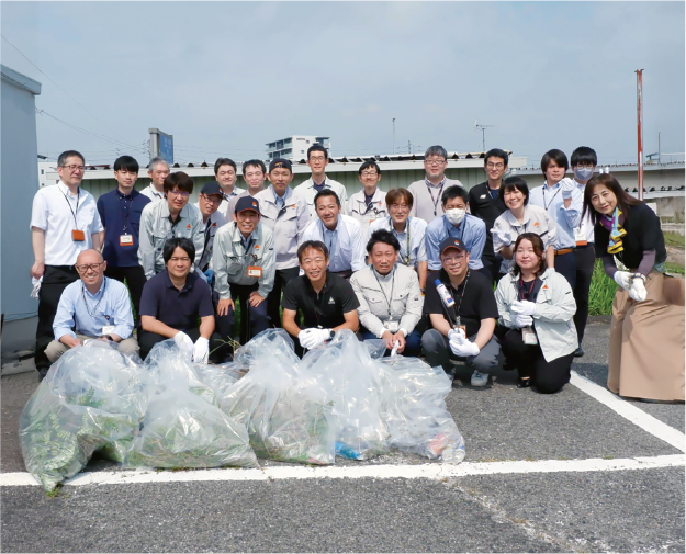 この6月、快適なオフィス環境の維持や景観美化、そして環境意識の向上を目的に、豊田寿オフィス周辺で美化活動を行いました。当日の朝は、ラビィちゃんの声掛けもあり、多くの従業員が参加。和やかな雰囲気の中で、清掃活動に取組みました。今後もこうした活動を継続し、微力ながら、地域への貢献にもつなげていければと思います。