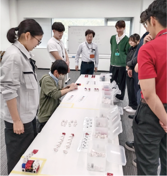 ▲ブロックを使った車の組立や模擬ラインの実習