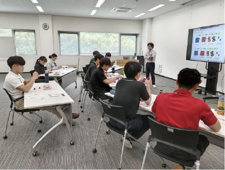 今年度より、新入社員研修にTPS(トヨタ生産方式)の基礎教育を導入。トヨタ自動車九州(株)で長くTPS研修を担当されていた人事・総務室の社員から、基本概念を実践的に学び、体感を通じて理解を深めています。今後、TPSの社内浸透を目的とした教育プログラムの展開も予定しています。