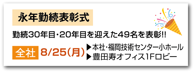 永年にわたりTPECの発展に貢献された社員49名へ感謝の意を込め、表彰式を実施しました。