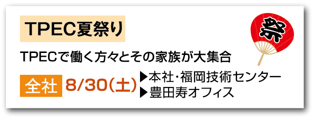 TPEC-WEEKのフィナーレを飾ったのは、「夏祭り」。本社・豊田地区それぞれの会場で、NAGOMIと陽の会による企画・運営のもと、従業員とそのご家族を対象に開催され、TPECの雰囲気や取組みに親しんでいただく機会となりました。