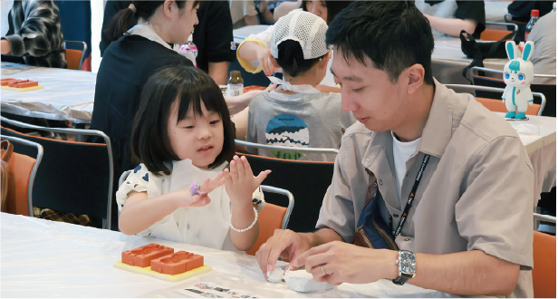 本社・福岡技術センター会場では、234名の皆さまにご参加いただき、1~4階を活用した宝探しゲームや、粘土でラビィちゃんを成形して色を塗る体験など、笑顔とワクワクがあふれる企画が盛りだくさんでした。「なぜ年に1回しかやらないの?」という声も聞かれるほど、会場は終始、笑顔とにぎわいに満ちた一日となりました。運営を支えてくださったスタッフの皆さん、そしてご協力いただいた参加者の皆さまに、心より感謝いたします。